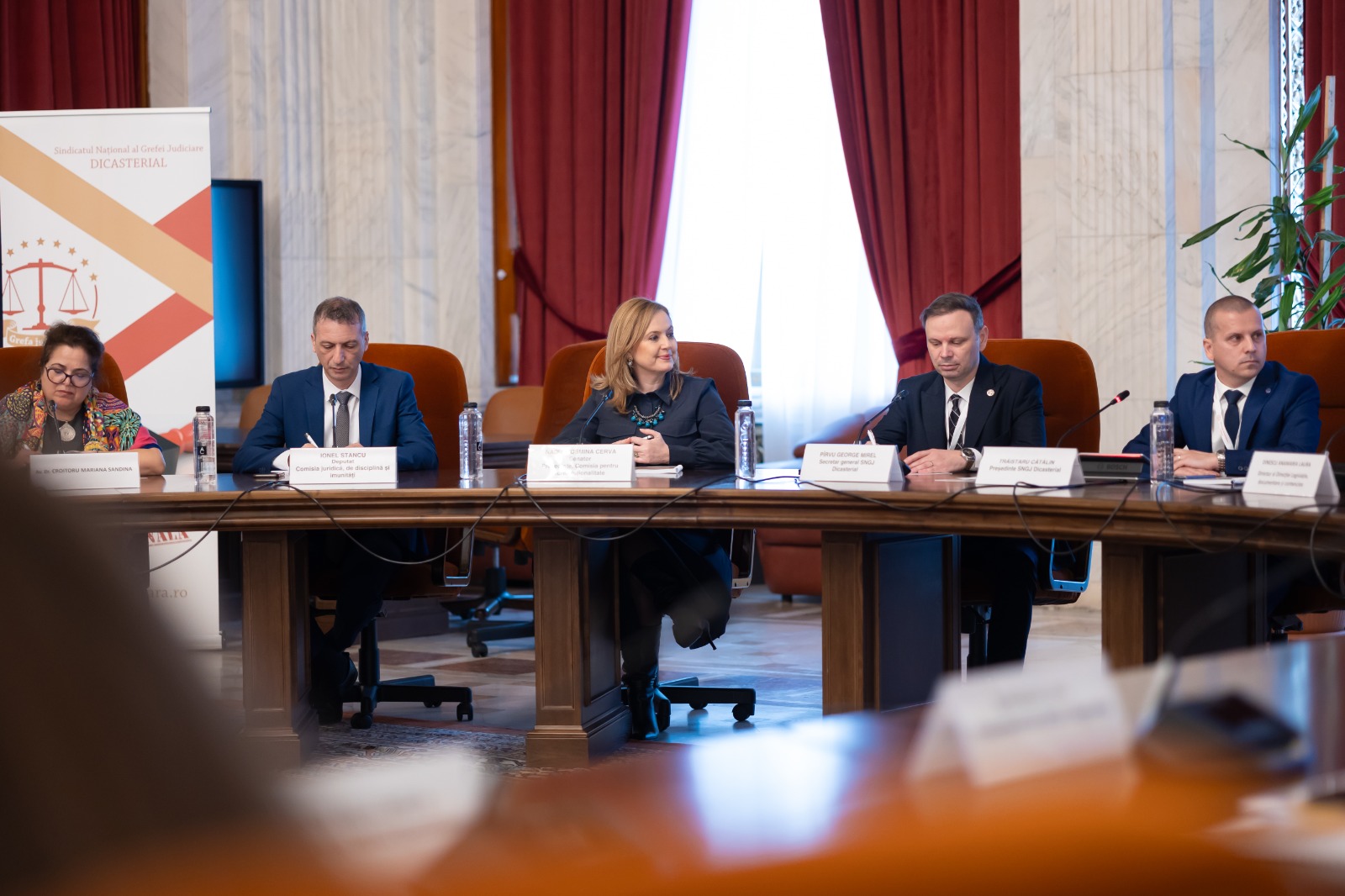 Vineri, 28 martie 2025, la invitația domnului Cătălin Trăistaru, președintele Sindicatului Național al Grefei Judiciare Dicasterial, am participat la conferința cu tema: „Continuarea demersului legislativ pentru adoptarea unui nou statut al profesiei de grefier, în contextul modernizării sistemului judiciar și impactul asupra justiției, ca urmare a declarării ca neconstituțională a Legii nr. 11/2024