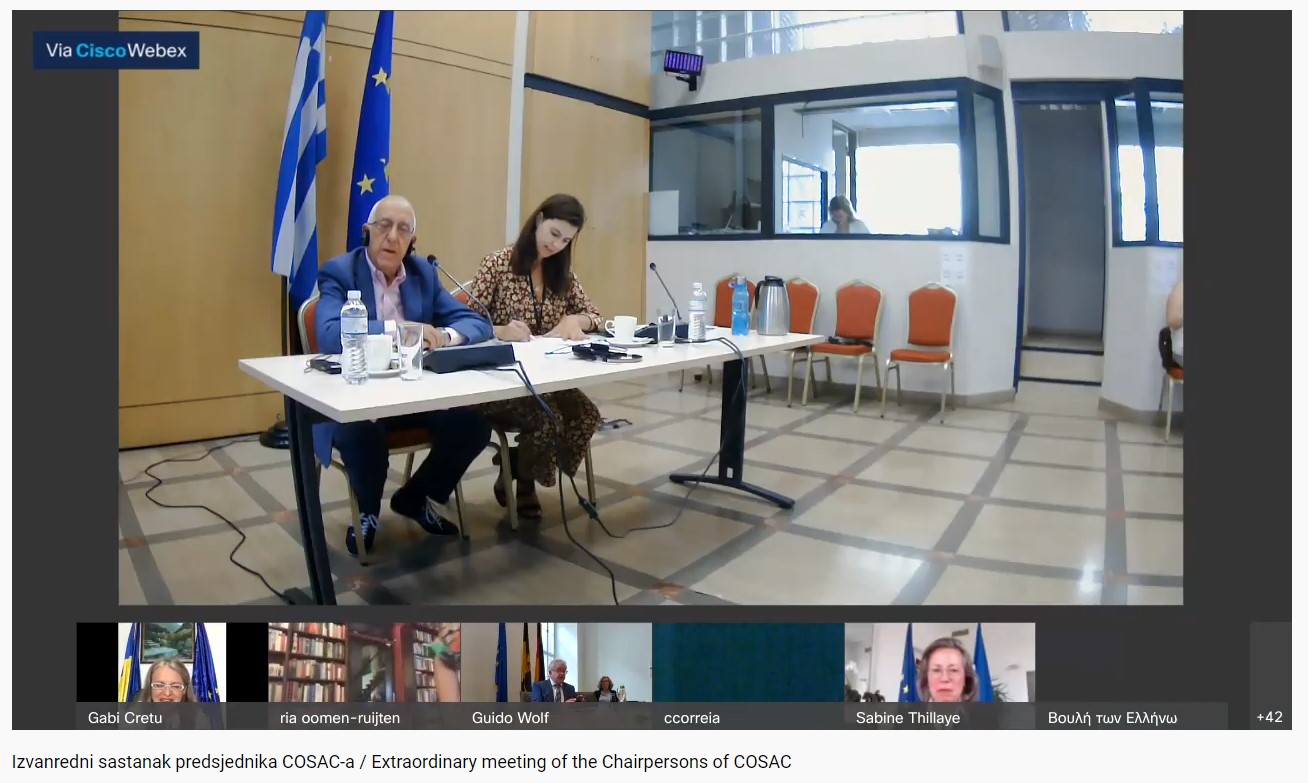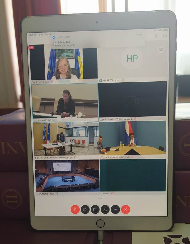 Preşedinta Comisiei pentru Afaceri Europene (CAE) a Senatului, Gabriela Crețu, a participat marți, 16 iunie, la videoconferința Reuniunii Extraordinare a Conferinței Organelor Specializate în Afaceri Comunitare şi Europene (COSAC), desfășurată în regim de videoconferință.