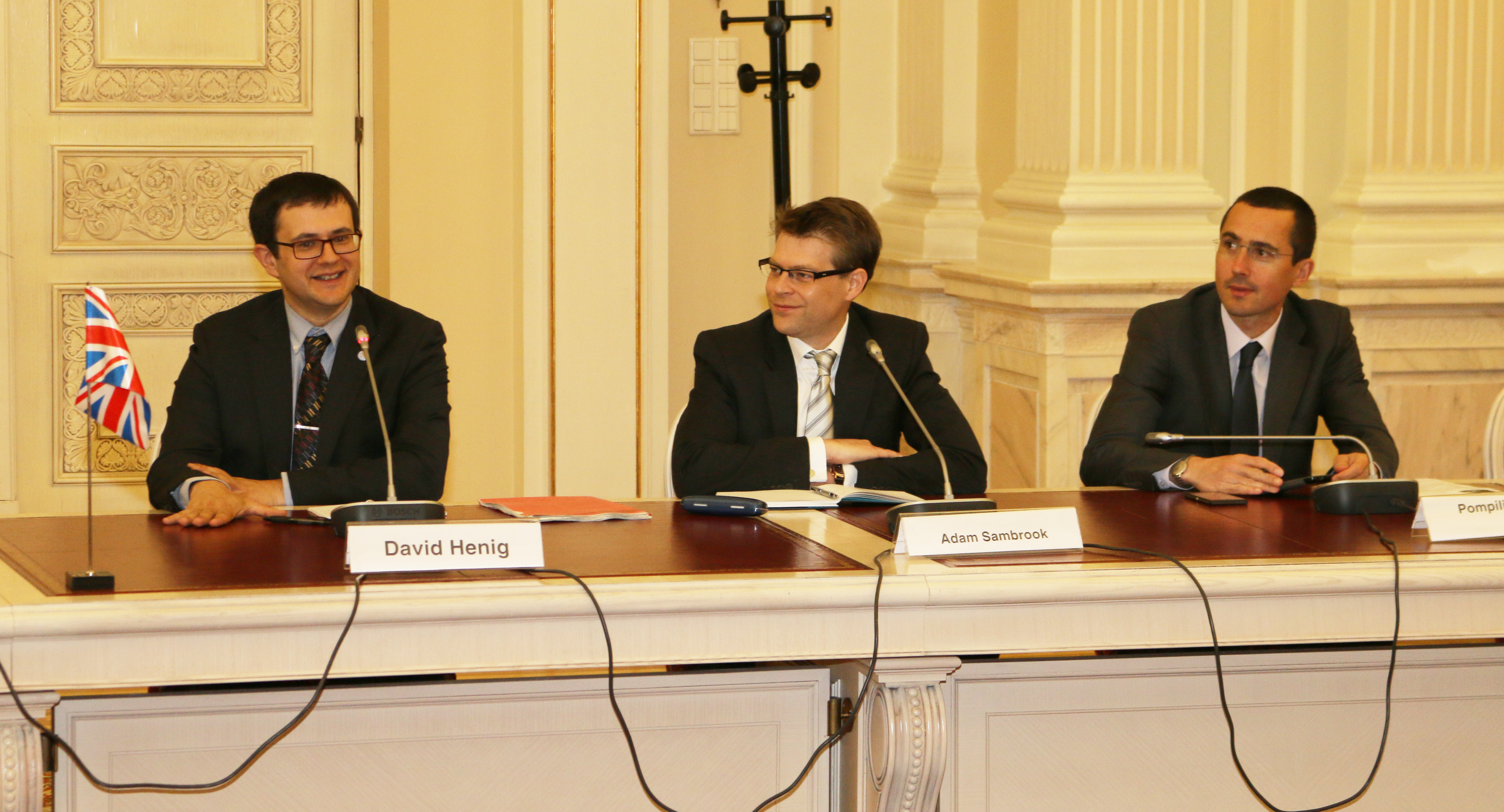Invitat de marcă a fost dl. David Henig - director pe TTIP în cadrul Business Innovations and Skills Department (BIS), echivalentul Ministerului Economiei din Marea Britanie, însoțit de oficiali ai Ambasadei Marii Britanii, dl. Adam Sambrook - Șef Adjunct de Misiune și Pompiliu Tamas - Senior Political Officer. Partea română a fost reprezentată de doamna senator Anca Boagiu, președintele Comisiei pentru Afaceri Europene, domnul senator Oprea Ştefan-Radu, președintele Comisiei pentru dezvoltare şi strategie economică, domnul deputat Iulian Iancu, președinte al Comisiei pentru industrii şi servicii, precum și de alți membri ai Comisiilor Permanente - doamna Andreea Paul, Secretar al Comisiei pentru buget, finanţe şi bănci din Camera Deputaților, doamna Senator Gabriela Crețu, raportor al Comisiei pentru Afaceri Europene din Senat pe TTIP.