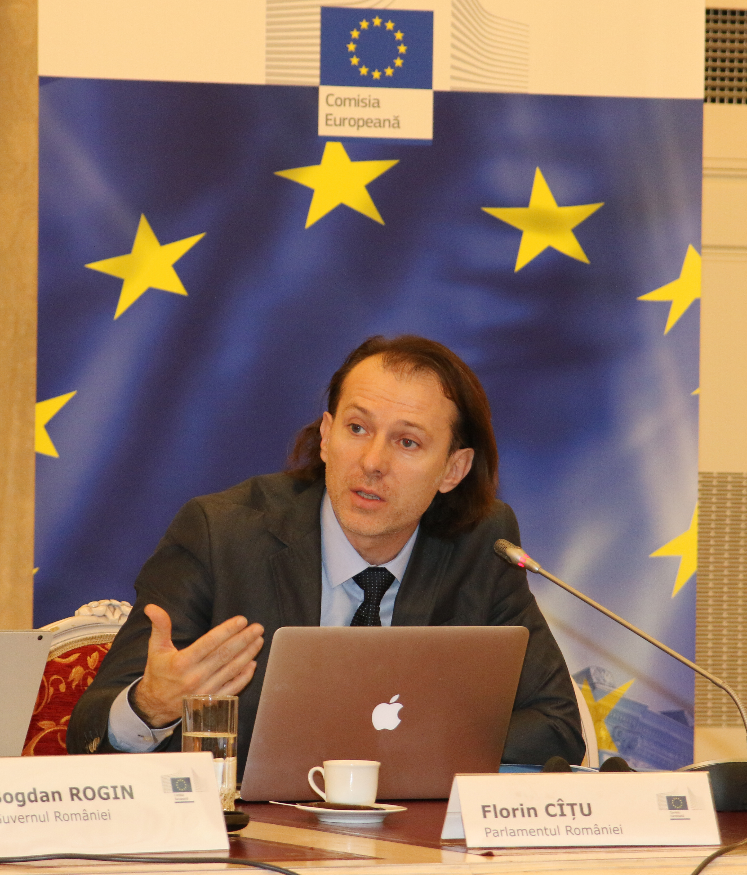 Principalii vorbitori au fost doamna Angela CRISTEA, Şeful Reprezentanţei Comisiei Europene în România, doamna senator Gabriela CREȚU, președinta Comisiei pentru afaceri europene, domnul deputat Angel TÎLVAR, președintele Comisiei pentru afaceri europene din Camera Deputaților, domnul deputat Dan Ilie BARNA, vicepreședintele Comisiei pentru politică externă, domnul senator Florin Vasile CÎȚU, președintele Comisiei economice și industrii, domnul Eugen Orlando TEODOROVICI, Ministrul Finanţelor Publice, domnul Siegfried MUREŞAN, membru al Parlamentului European (EPP), vicepreședinte al Comisiei pentru bugete, domnul Răzvan POPA, membru al Parlamentului European (S&D), domnul Victor NEGRESCU, Ministrul delegat pentru afaceri europene, domnul Daniel DĂIANU, Academician și membru în Consiliul de administraţie al Băncii Naționale a României și doamna Gabriela DRĂGAN, director general al Institutului European din România.