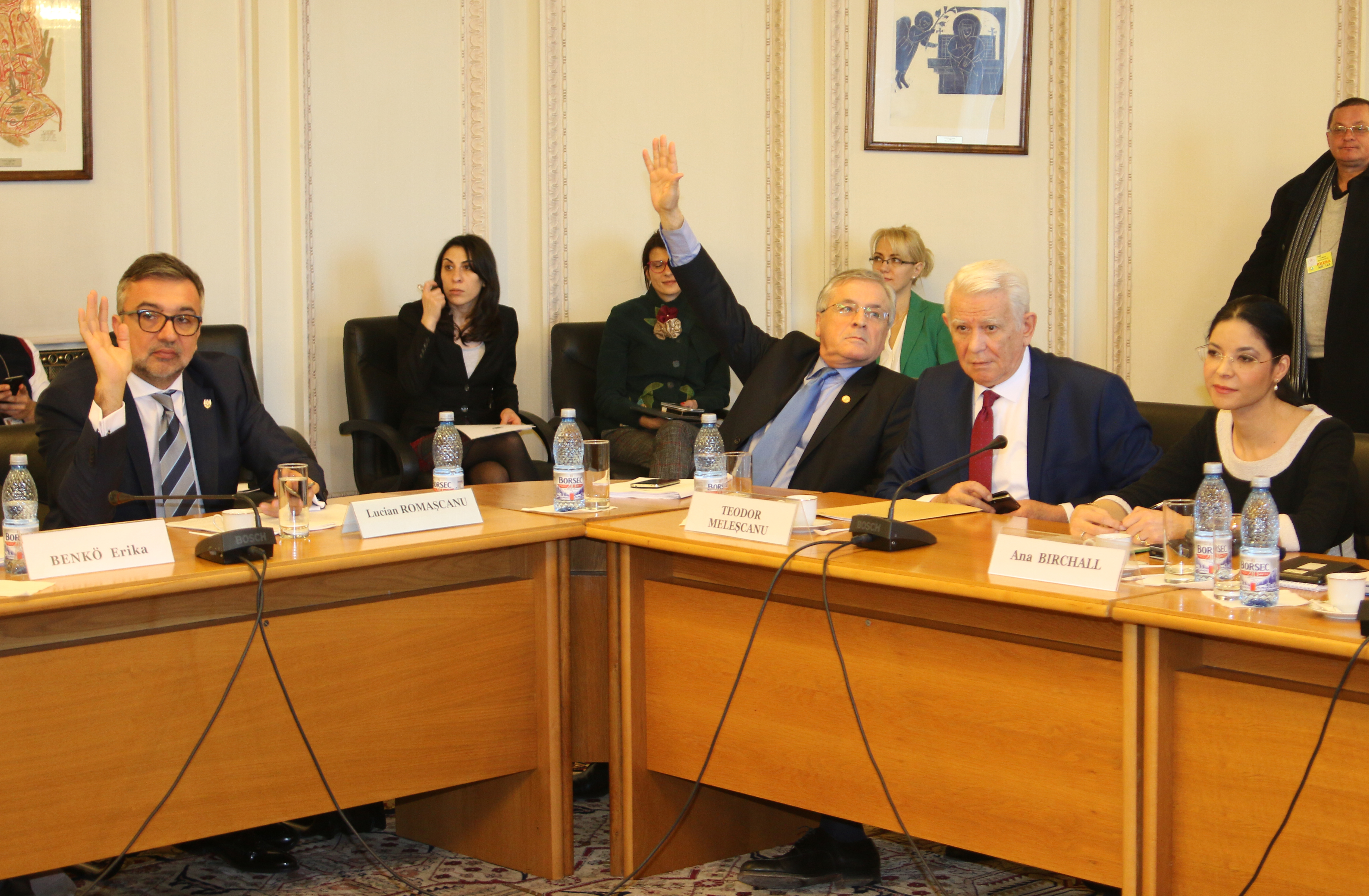 Ședința comună au avut loc în prezența miniștrilor, doamna Mihaela Virginia Toader – ministru delegat pentru Fonduri Europene, doamna Ana Birchall – ministru delegat pentru Afaceri Europene și a domnului Teodor-Viorel Meleşcanu – ministrul afacerilor externe.