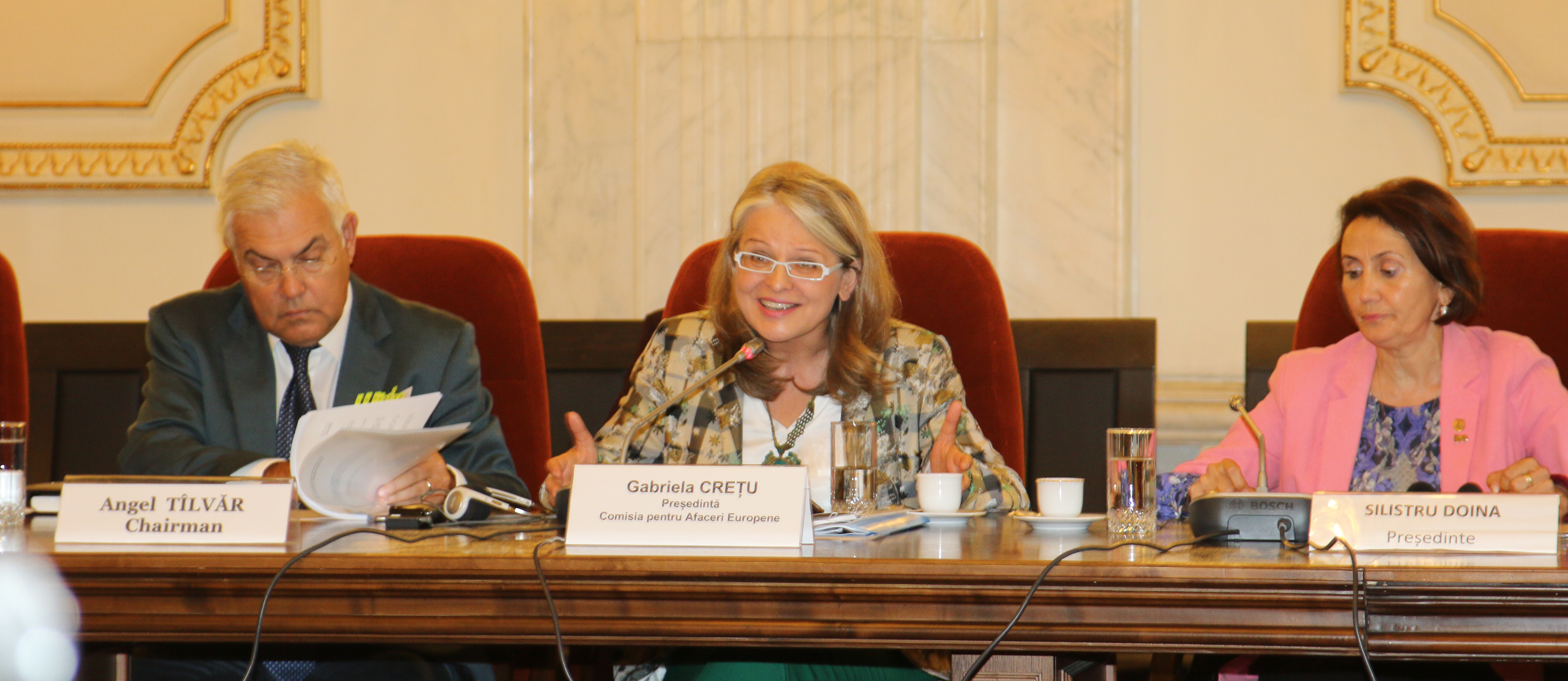 În intervenția sa, doamna președintă a Comisiei pentru afaceri europene a apreciat optimismul cu care Comisarul european privește negocierea viitorului Cadru Financiar Multianual și dorința de a se ajunge la un acord final în martie 2019, în mandatul Președinției României la Consiliul UE. Cu această ocazie, doamna senator Gabriela Crețu a prezentat faptul că primul pachet de regulamente europene referitoare la CFM a fost deja examinat în cadrul comisiei pentru afaceri europene, urmând ca săptămâna următoare să fie examinate și cele referitoare la PAC.